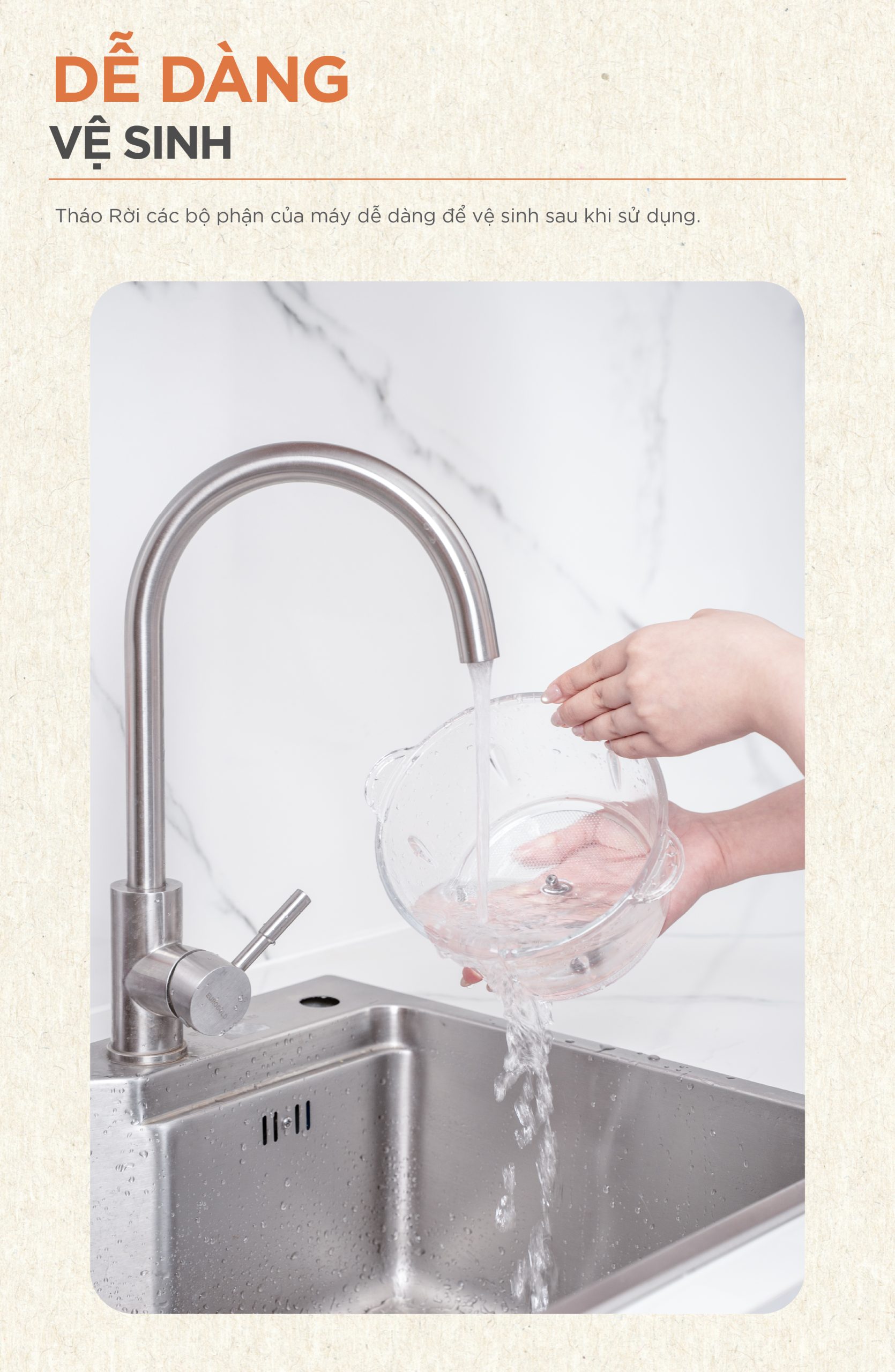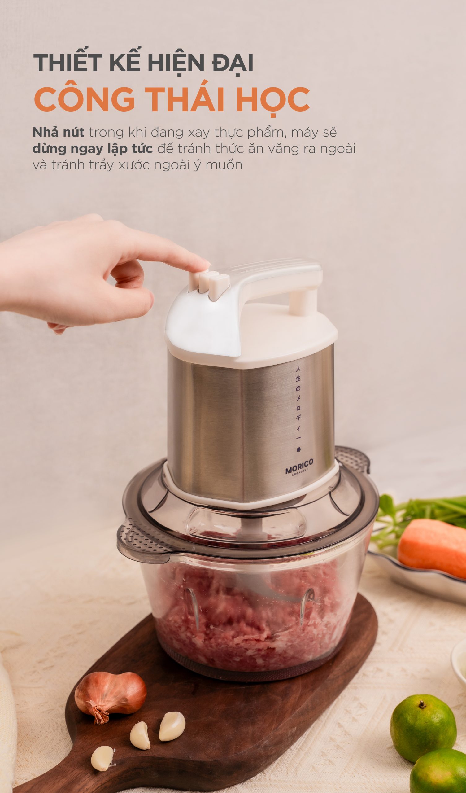 Morico MM5001 được thiết kế thông minh với tay cầm công thái học, giúp bạn dễ dàng thao tác chỉ bằng một tay. Các chi tiết máy có thể tháo rời, lắp đặt nhanh chóng trong tích tắc. Sau khi sử dụng, việc vệ sinh cũng trở nên đơn giản khi bạn có thể rửa sạch từng bộ phận một cách dễ dàng, luôn đảm bảo an toàn vệ sinh thực phẩm cho cả gia đình.