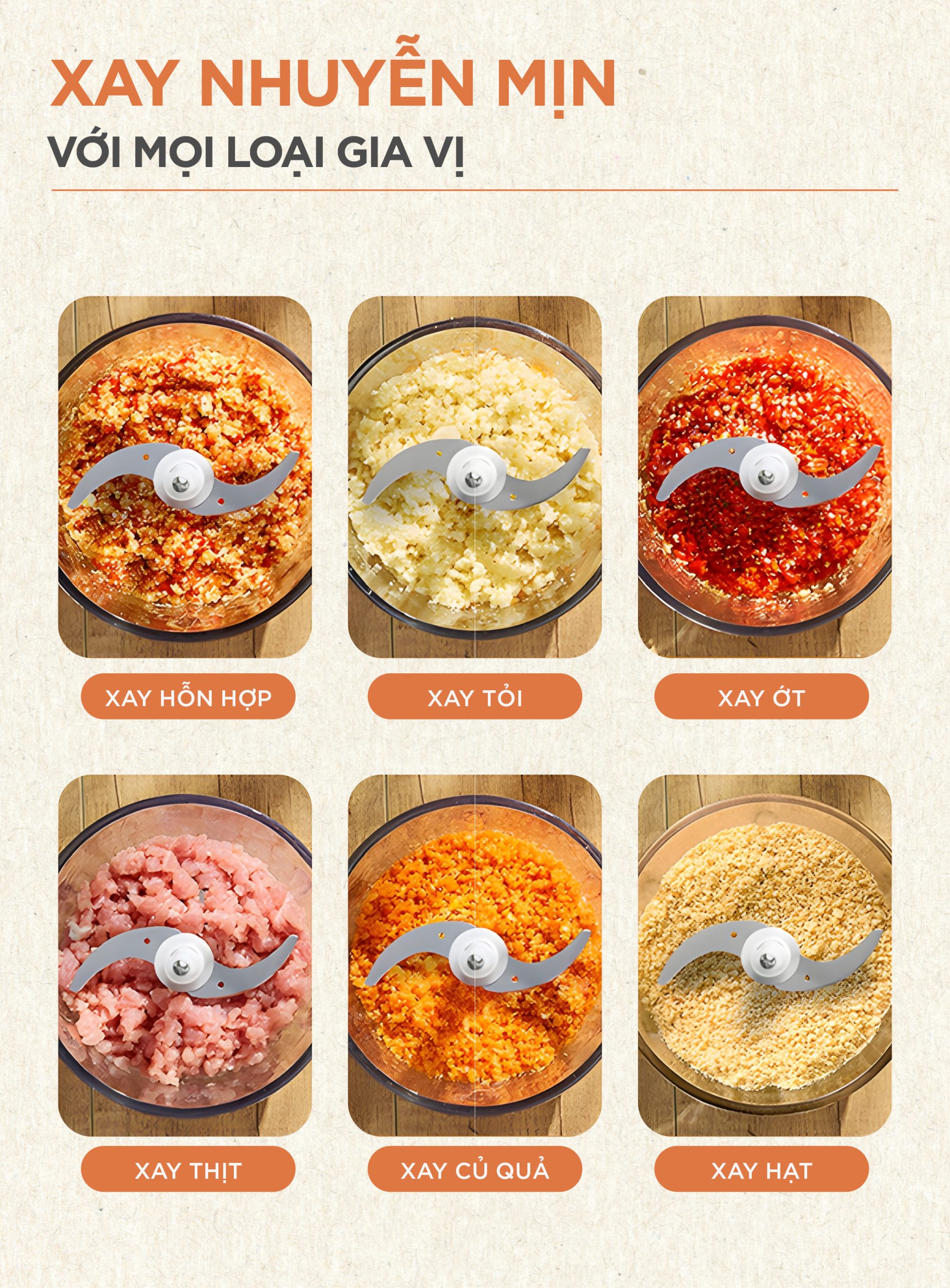 - Cấp độ 2 dùng để xay thịt, các loại củ quả cứng.