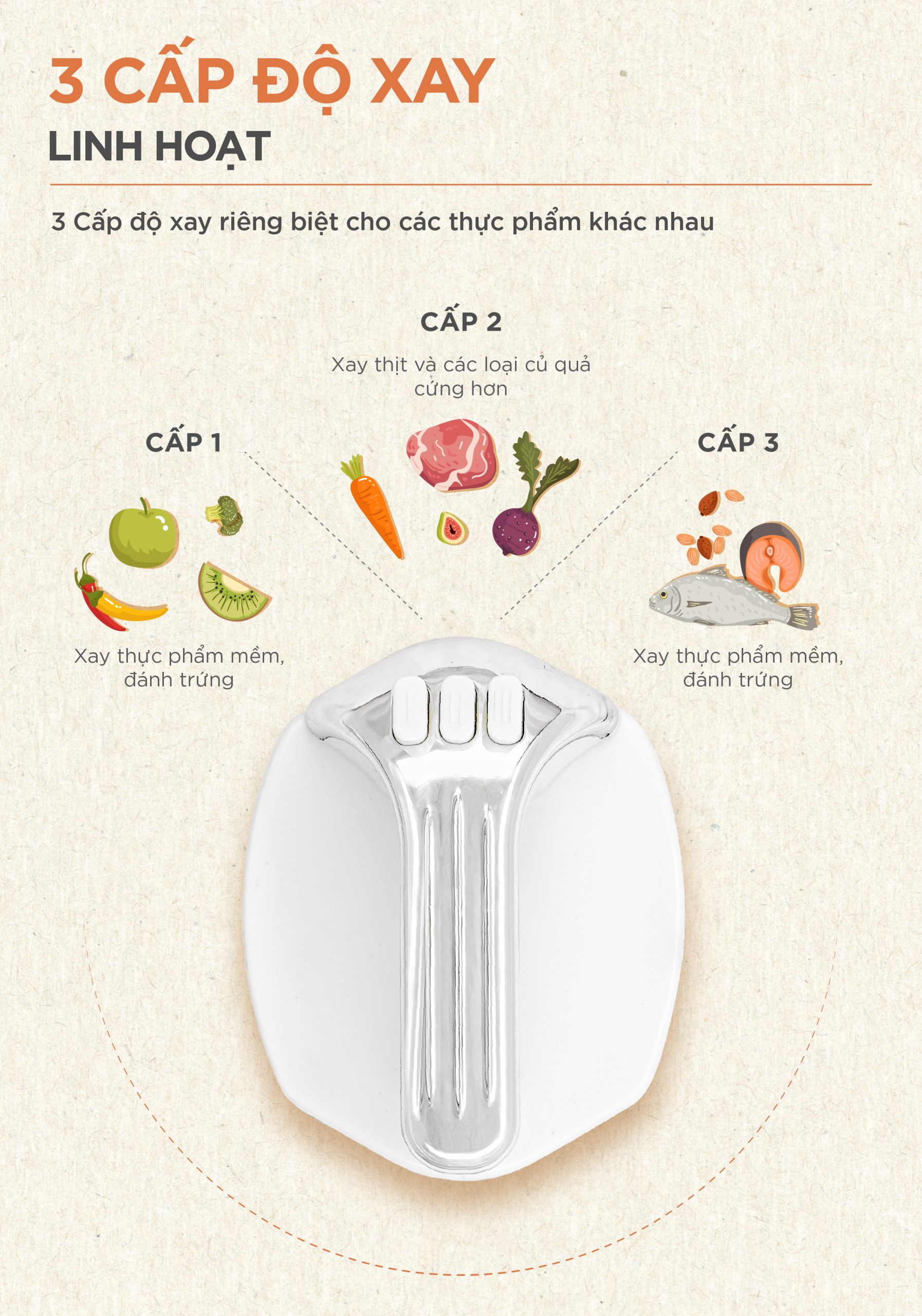 2. Ba cấp độ xay linh hoạt cho nhiều loại thực phẩm