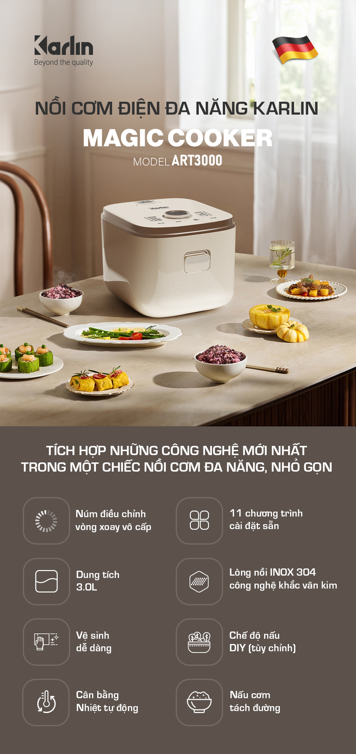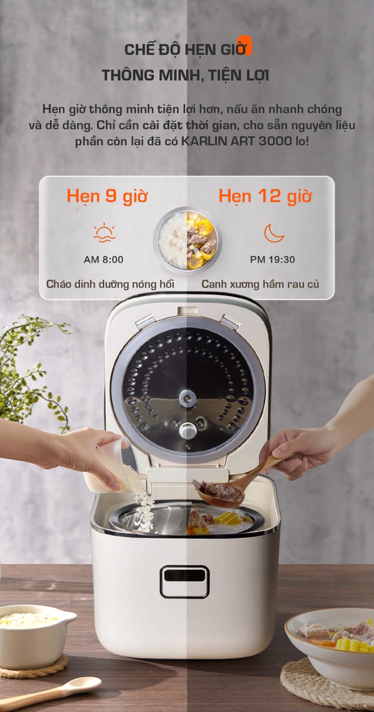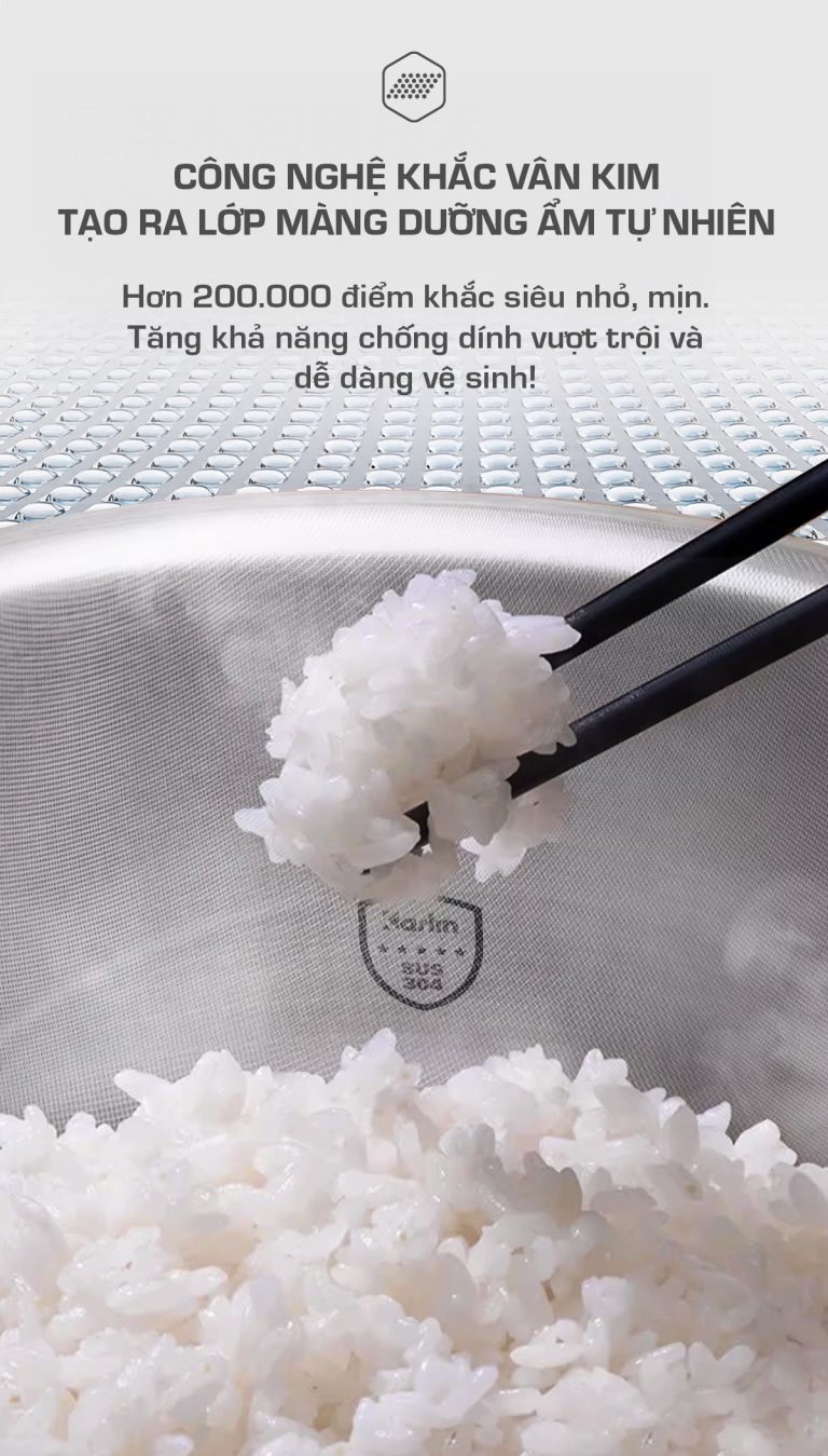 Nồi Cơm Điện KARLIN ART3000 – Lòng Nồi INOX 304 Vân Lục Giác Chống Dính Tự Nhiên, Dung Tích 3 Lít , Nấu Cơm Ngon, Thiết Kế Sang Trọng