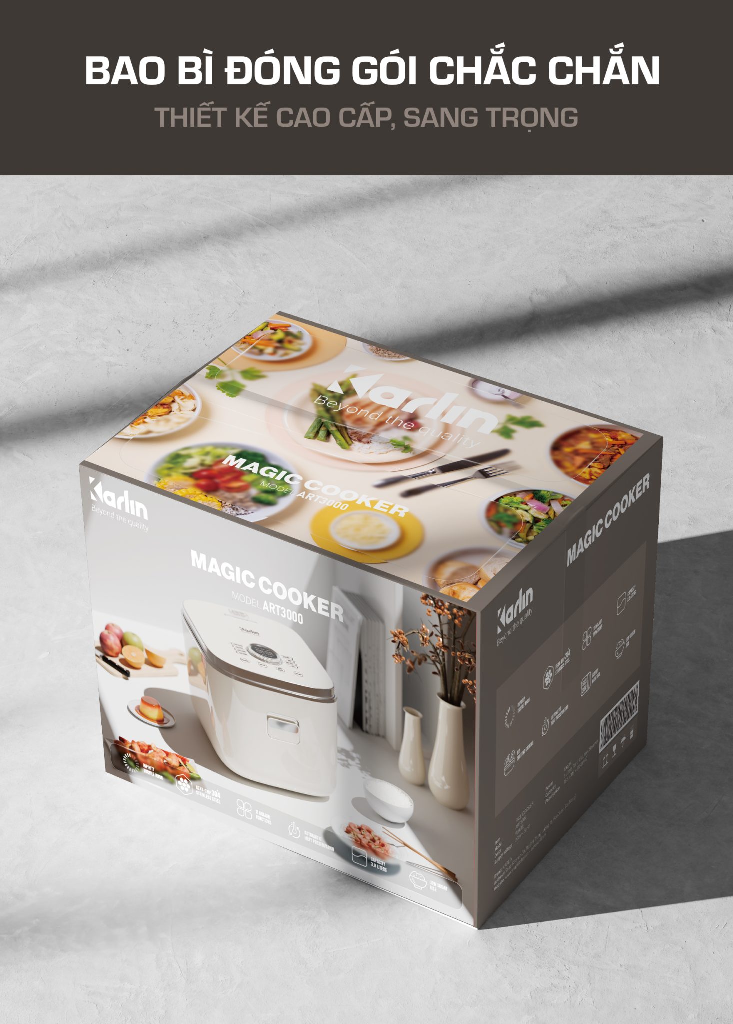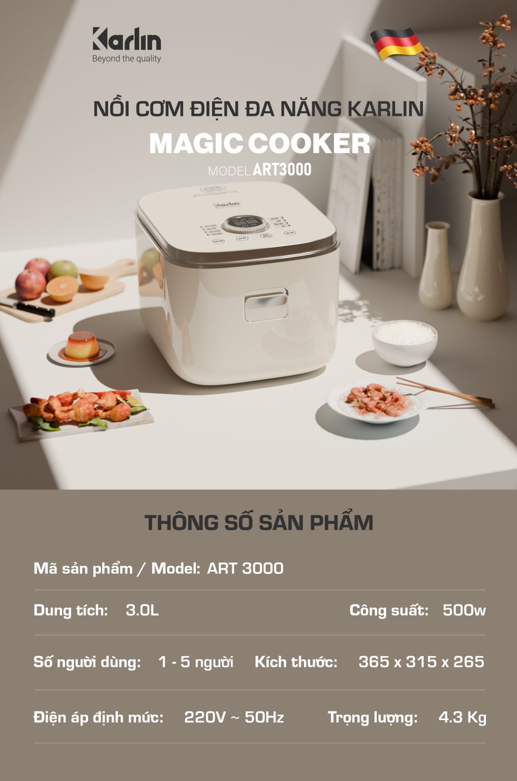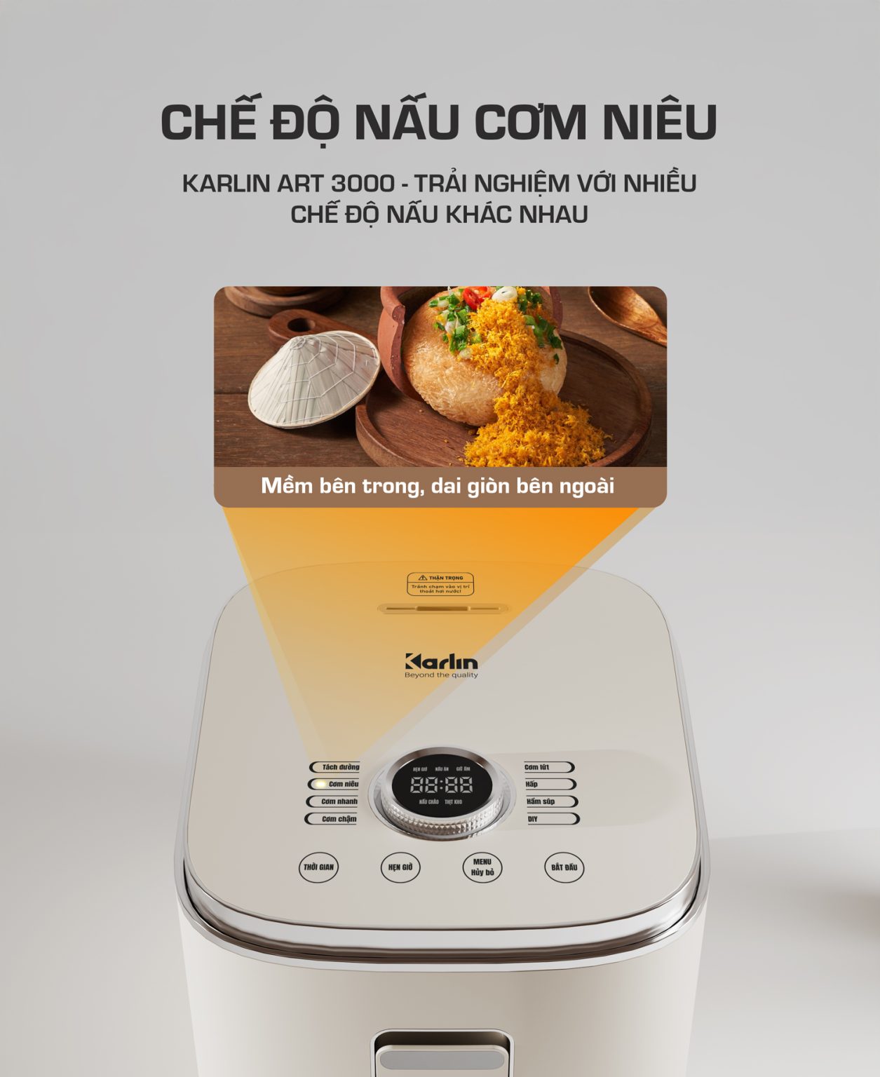 Nồi Cơm Điện KARLIN ART3000 – Lòng Nồi INOX 304 Vân Lục Giác Chống Dính Tự Nhiên, Dung Tích 3 Lít , Nấu Cơm Ngon, Thiết Kế Sang Trọng