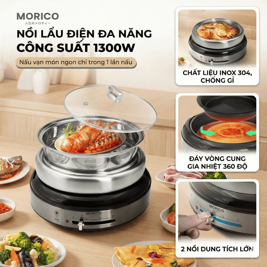 Nồi lẩu nướng hấp đa chức năng Morico MH801 là sản phẩm mới nhất có đa dạng chức năng, vừa sử dụng để nấu lẩu, nướng và hấp thực phẩm vô cùng tiện lợi, Chỉ với một chiếc nồi mà có thể thay thế nhiều dụng cụ nhà bếp, tiết kiệm không gian bếp .