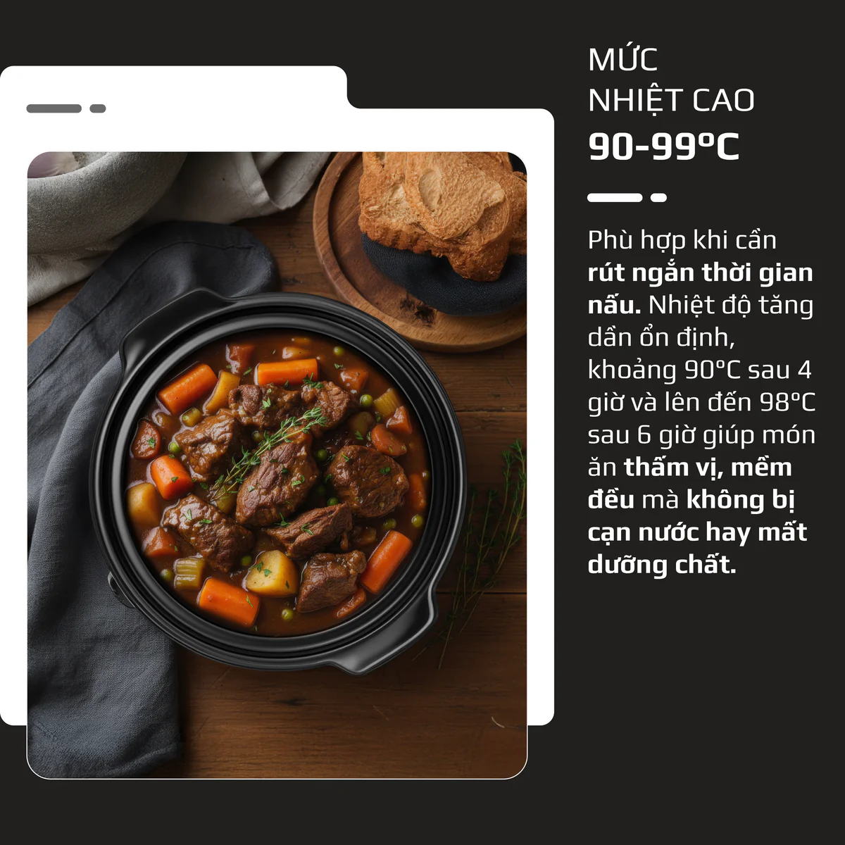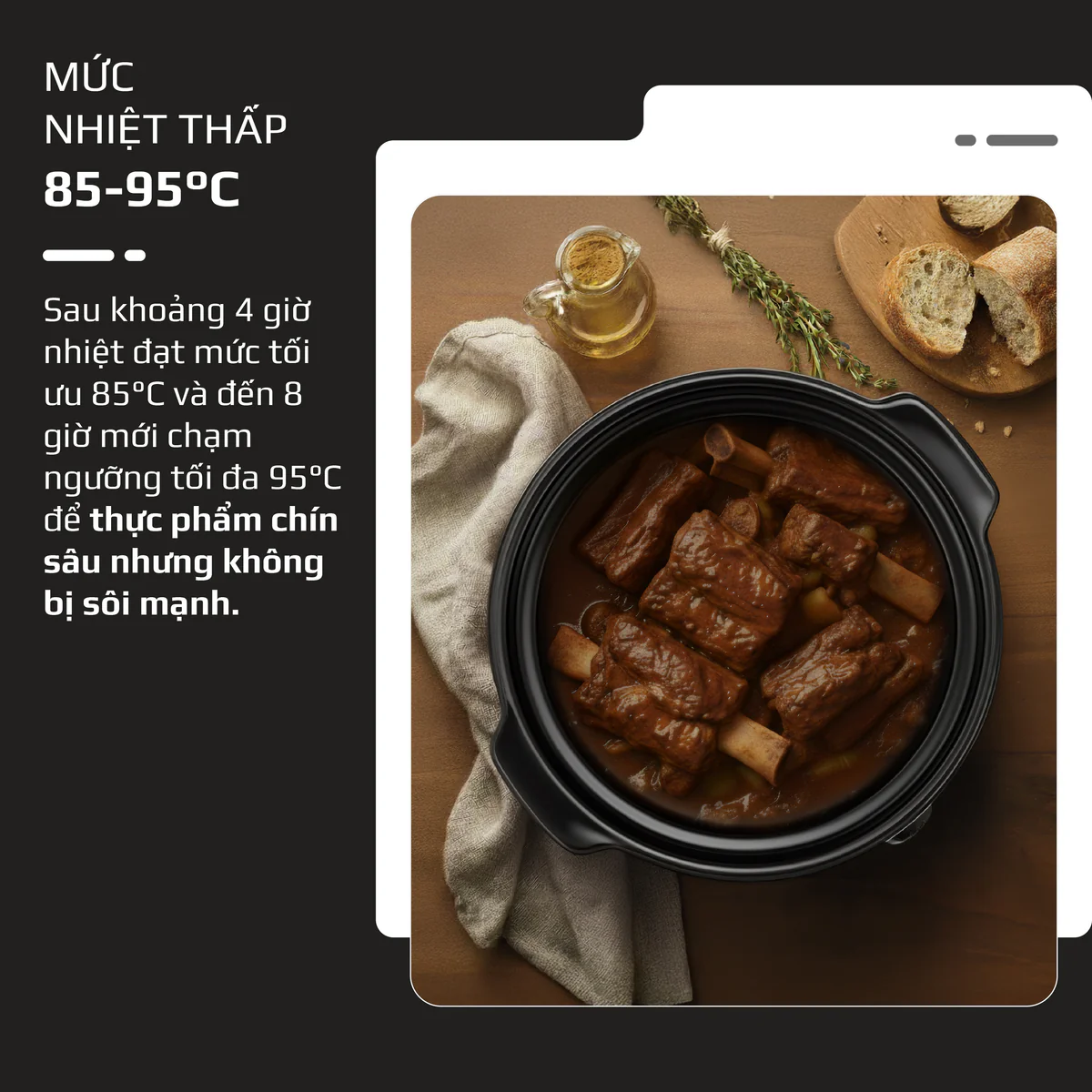 4. CÔNG SUẤT THẤP – NẤU CHẬM ĐÚNG CHUẨN, TIẾT KIỆM NĂNG LƯỢNG