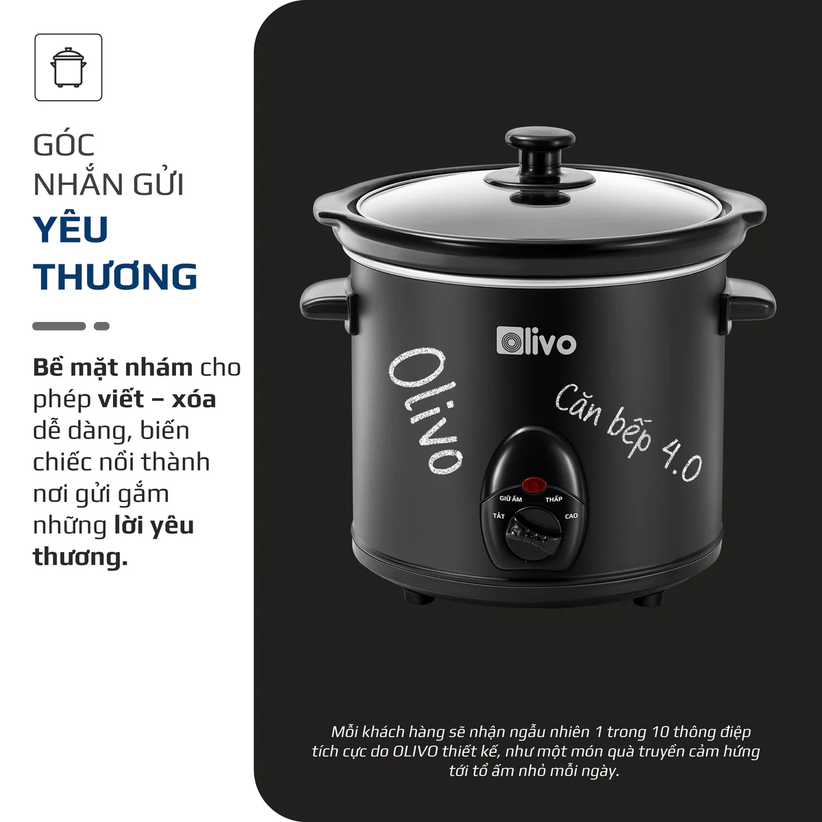 - OLIVO SC25/SC30 không chỉ là chiếc nồi, mà là “người giữ lửa” thông minh cho căn bếp: chậm mà chắc, đơn giản mà hiệu quả, nhẹ nhàng mà chăm chút cho từng bữa ăn của gia đình bạn.